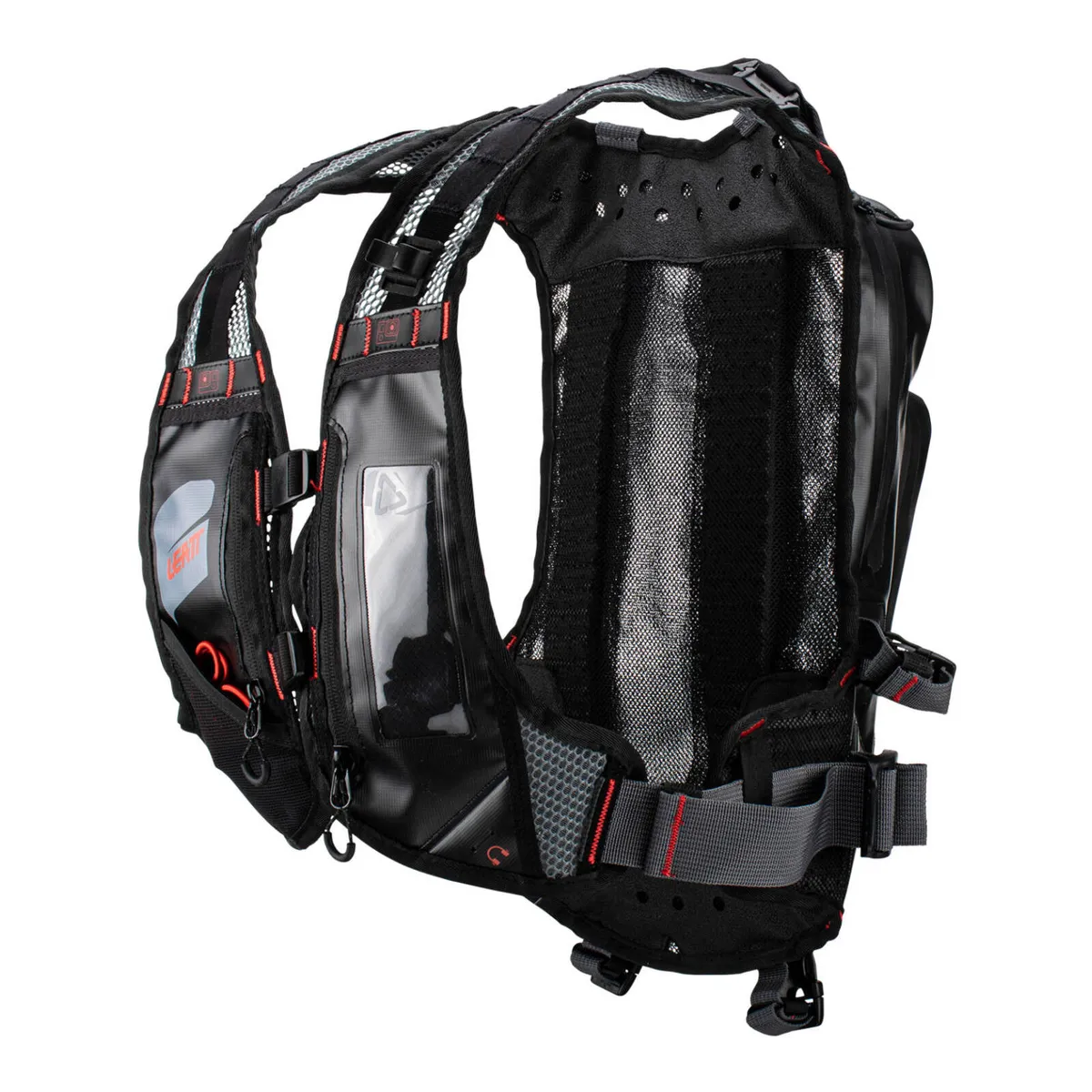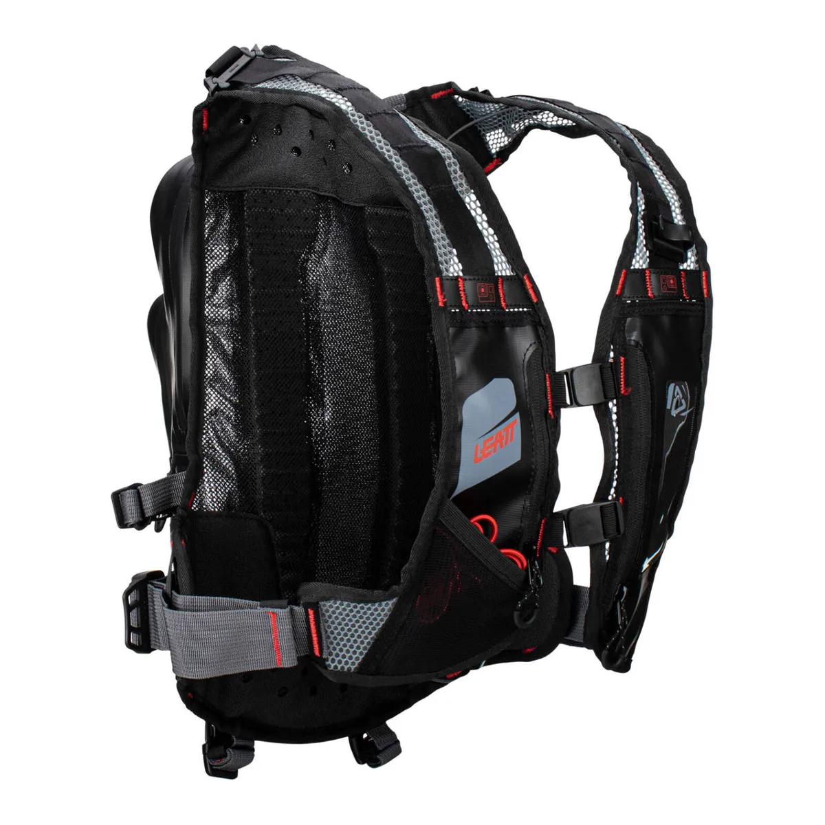Leatt uses a 2.0L Cleantech vertical hydration bladder with an auto shut-off bite valve, feed tube routing can be either over the shoulder or under the arm, and cargo storage is 5.0L. The lightweight unique chest harness system is fully adjustable across the chest and around the waist, ensuring a rock-solid fit, with Airline back ventilation that helps keep airflow between the bag and your back, sweat is kept to a minimum.