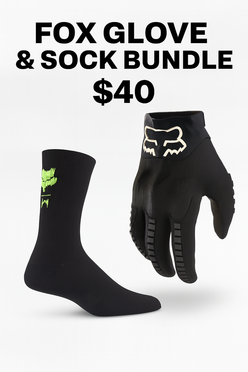 1 x Fox Bomber LT Glove with D3O knuckle protection + 1 pair of fox 8" Ranger socks.
