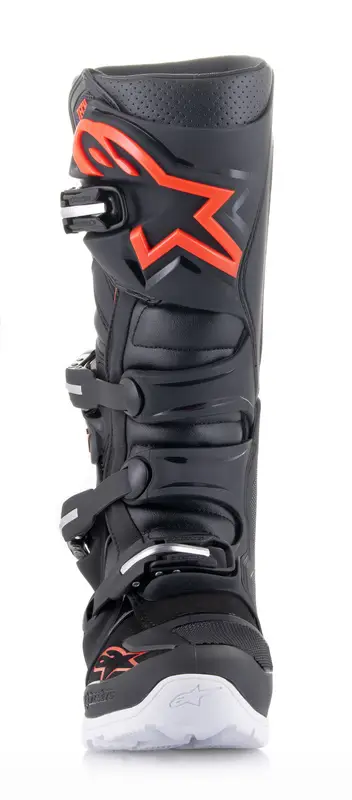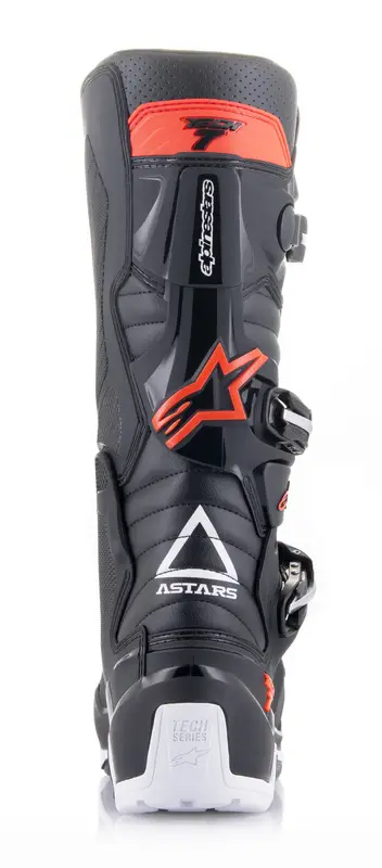 Contoured calf protector plate is injected with high modulus polymer for impact resistance and incorporates Alpinestars’ developed blade flex system for greater precision control and movement, added protection for heel and Achilles tendon and helps prevent hyperflexion
