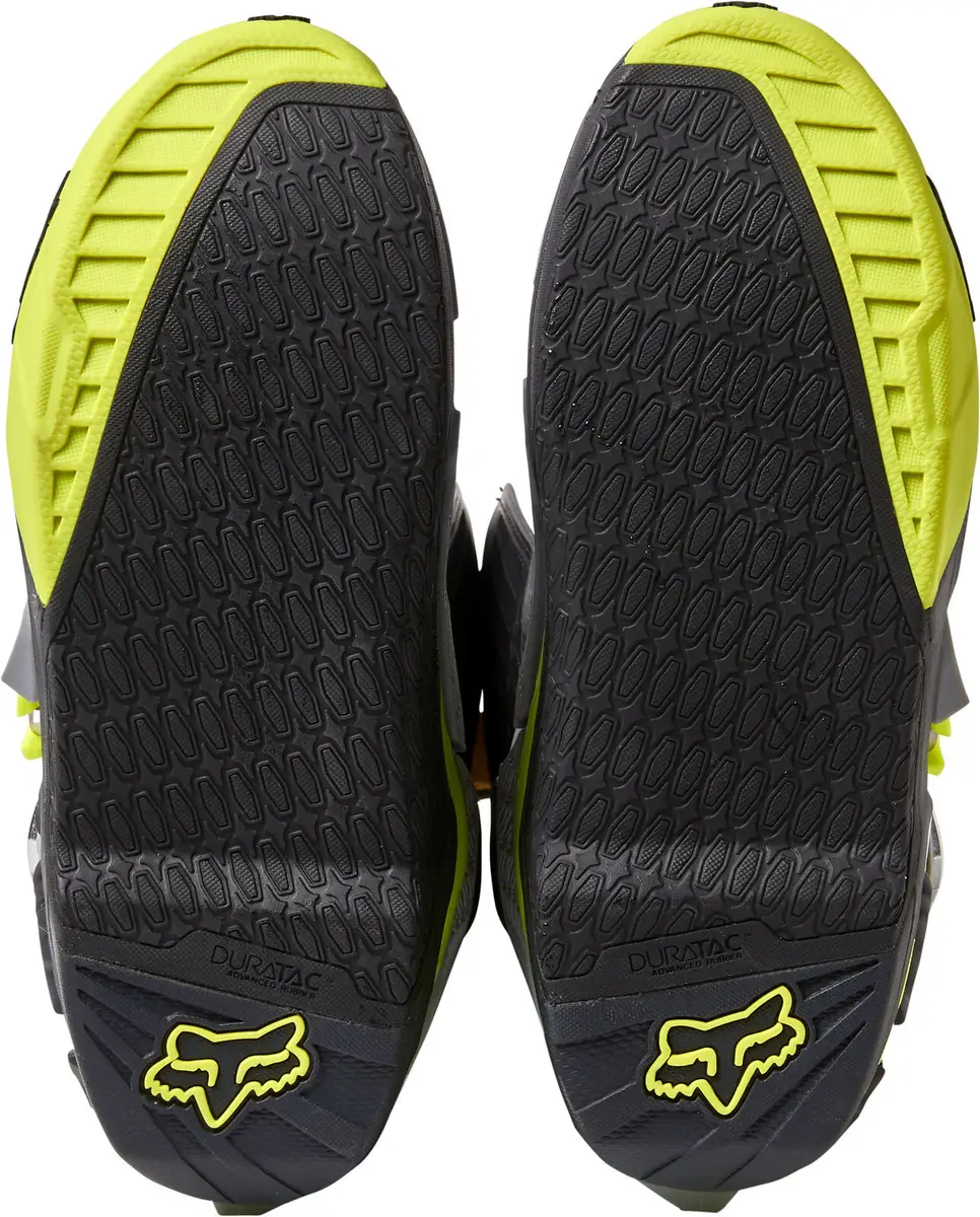 Fox Duratac rubber compound for improved durability and unprecedented grip on outsole and burn guard