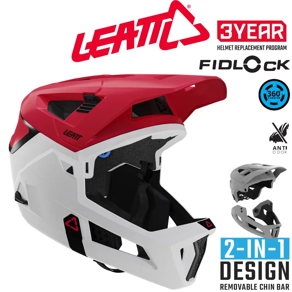 Renowned for its ventilation and comfort, this enduro MTB helmet has been advanced from the much loved 4.0 full face helmet. Packed with unique features there is not another helmet on the market like it! A removable mouthpiece in the chin bar increases ventilation or can be installed to protect you when riding in poor weather conditions. A universal sunglasses dock lets you safely dock your sunglasses under the visor when not in use, protected from scratches and unwanted impacts. The adjustable visor opens up enough to place your goggles underneath, so you don't have to constantly remove them. This fully ASTM DH certified helmet is the go-to helmet for enduro riders. Uphill or downhill, E-bike or trail - you name it, the Leatt 4.0 Enduro helmet has you covered. The full-face design with removable chin bar with an incredible strong magnesium lock offers outstanding ventilation and its convenient Fidlock buckle makes life just peachy! We all crash. Sometimes hard, and sometimes even harder! Leatt helmets feature 360° Turbine Technology reduces both rotation acceleration and concussion level impact energy to your head and