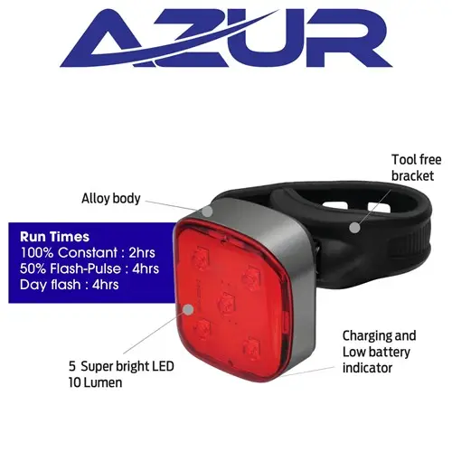 Modes: 100% Brightness, 50% Brightness-flash- Pulse, Flash-Flash